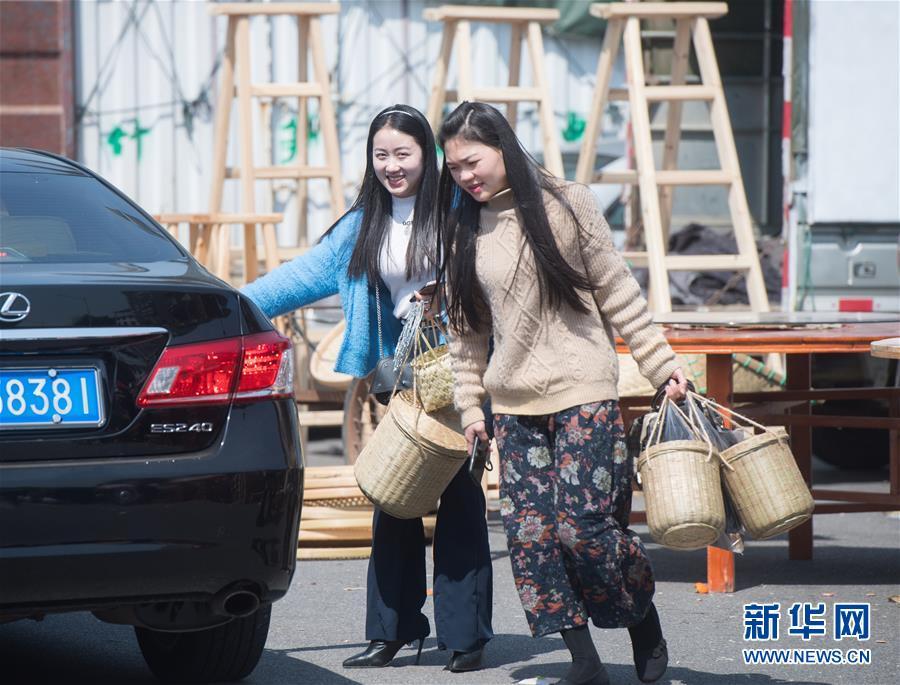 3月12日,兩位女士在福建武夷山“柴頭會(huì)”上采購(gòu)后準(zhǔn)備乘車(chē)離開(kāi)。 新華社記者 宋為偉 攝