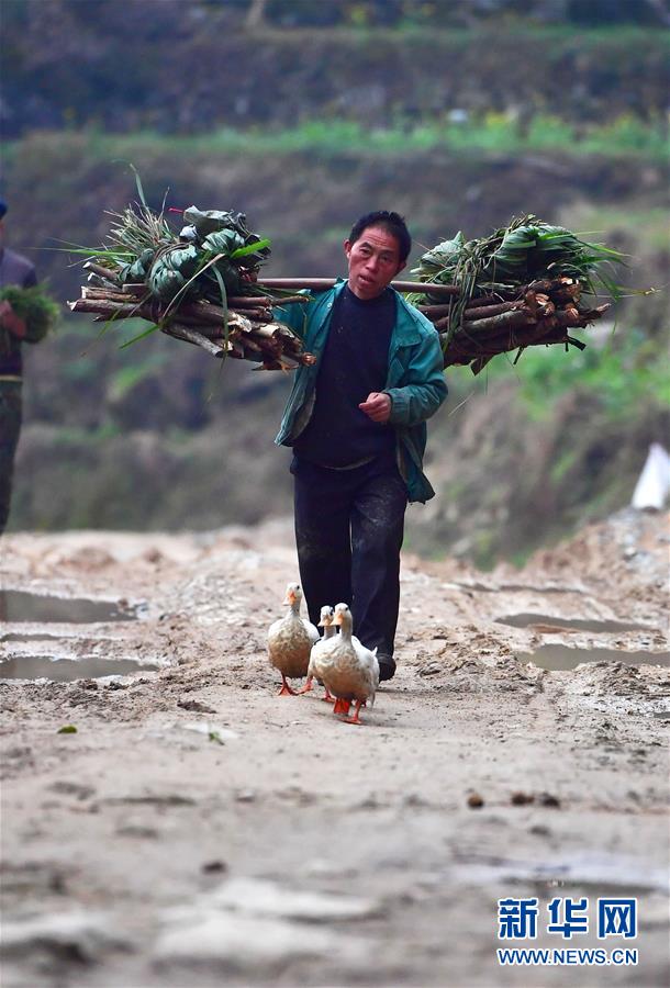 在黔桂烏英苗寨,村民勞作歸來(lái)(3月18日攝)。 新華社記者 黃孝邦 攝