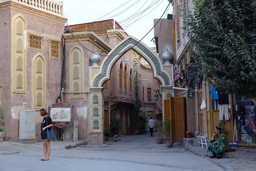 兩千多年前,這里是古疏勒國王宮所在地,從500多年前建立艾提尕爾清真寺起始,吾斯塘博依街逐漸成為一條喧鬧繁華的主街,匯聚了當(dāng)?shù)刈畛錾哪芄で山常敲逼鋵嵉氖止に嚻芬粭l街。李仁奇 攝