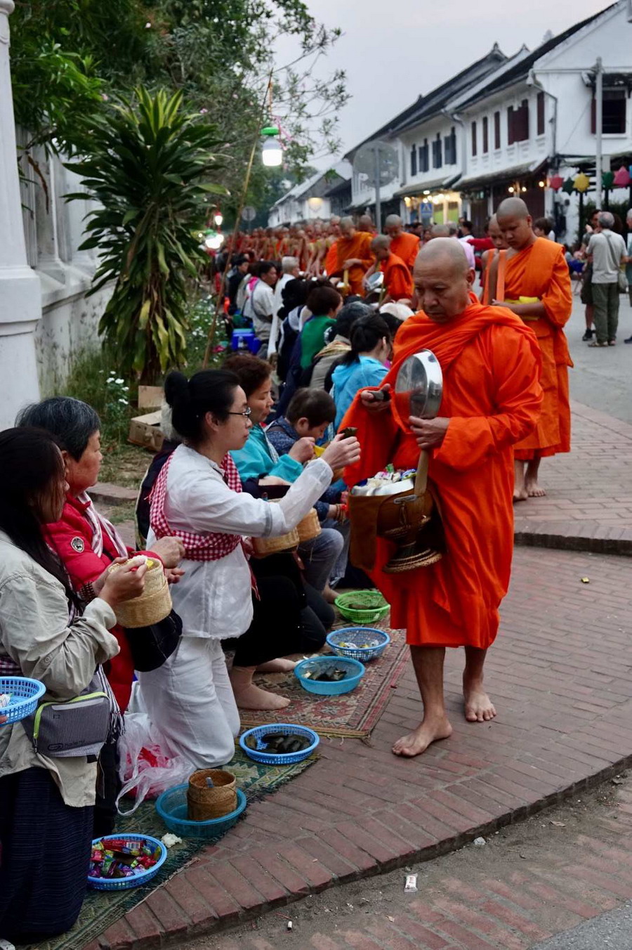 布施過(guò)程肅穆平靜,彰顯了老撾人民的淳樸善良。