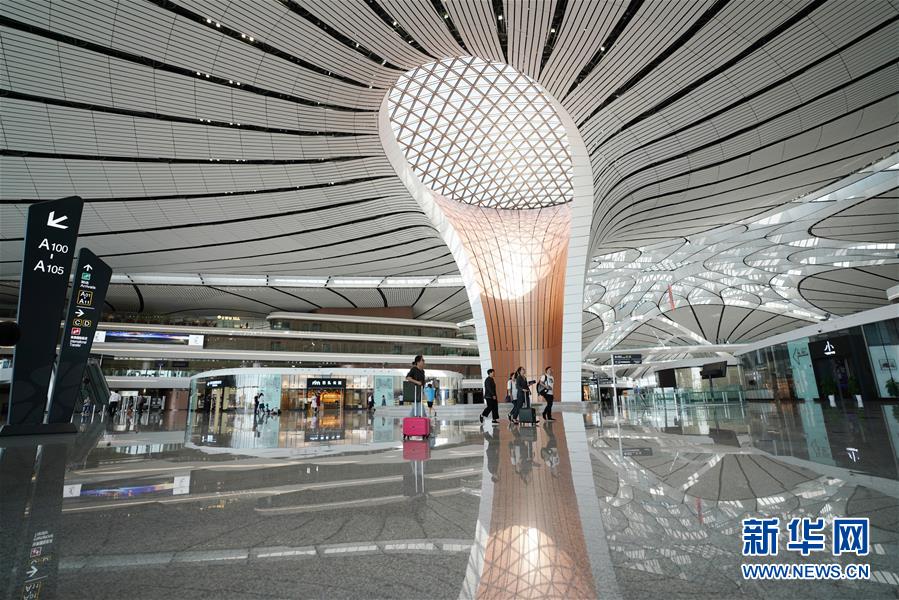 9月25日,乘客在北京大興國際機場航站樓內(nèi)準備乘機。新華社記者鞠煥宗攝