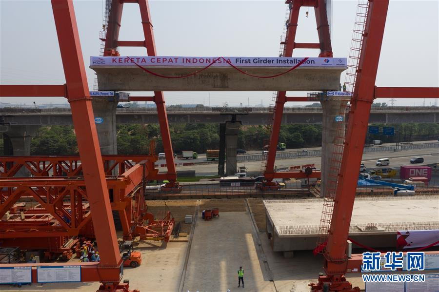 9月30日,雅萬高鐵全線首榀箱梁成功架設(shè)。 印度尼西亞雅萬高鐵全線首榀箱梁9月30日架設(shè)成功,高鐵建設(shè)繼續(xù)穩(wěn)步推進(jìn)。雅萬高鐵全長142公里,最高設(shè)計(jì)時(shí)速350公里,2018年6月全面開工,總工期為36個(gè)月,今年是施工建設(shè)全面提速的關(guān)鍵年。建成通車后,雅加達(dá)至萬隆的時(shí)間將由現(xiàn)在的3個(gè)多小時(shí)縮短至40分鐘。 新華社記者 杜宇 攝