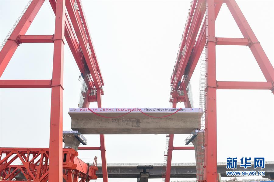 9月30日,雅萬高鐵全線首榀箱梁成功架設(shè)。 印度尼西亞雅萬高鐵全線首榀箱梁9月30日架設(shè)成功,高鐵建設(shè)繼續(xù)穩(wěn)步推進(jìn)。雅萬高鐵全長142公里,最高設(shè)計(jì)時(shí)速350公里,2018年6月全面開工,總工期為36個(gè)月,今年是施工建設(shè)全面提速的關(guān)鍵年。建成通車后,雅加達(dá)至萬隆的時(shí)間將由現(xiàn)在的3個(gè)多小時(shí)縮短至40分鐘。 新華社記者 杜宇 攝