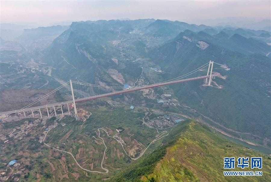 9月30日無人機(jī)拍攝的赤水河紅軍大橋。 新華社記者劉坤攝
