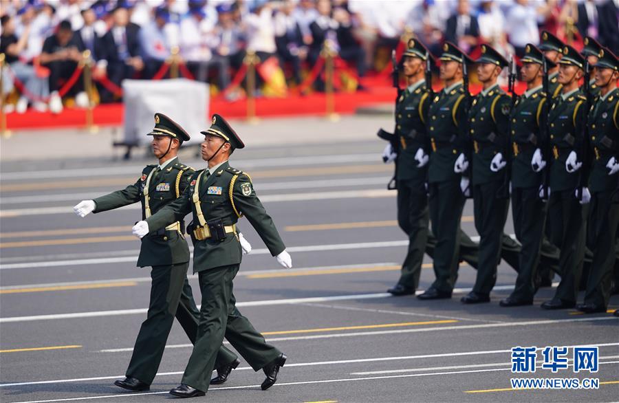 10月1日上午,慶祝中華人民共和國成立70周年大會在北京天安門廣場隆重舉行。這是陸軍方隊(duì)通過天安門廣場。新華社記者周密攝