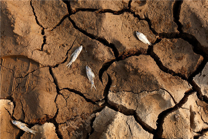 2011年9月21日,江西鄱陽(yáng)湖,一條沒(méi)來(lái)及逃離的魚干死在河床上。