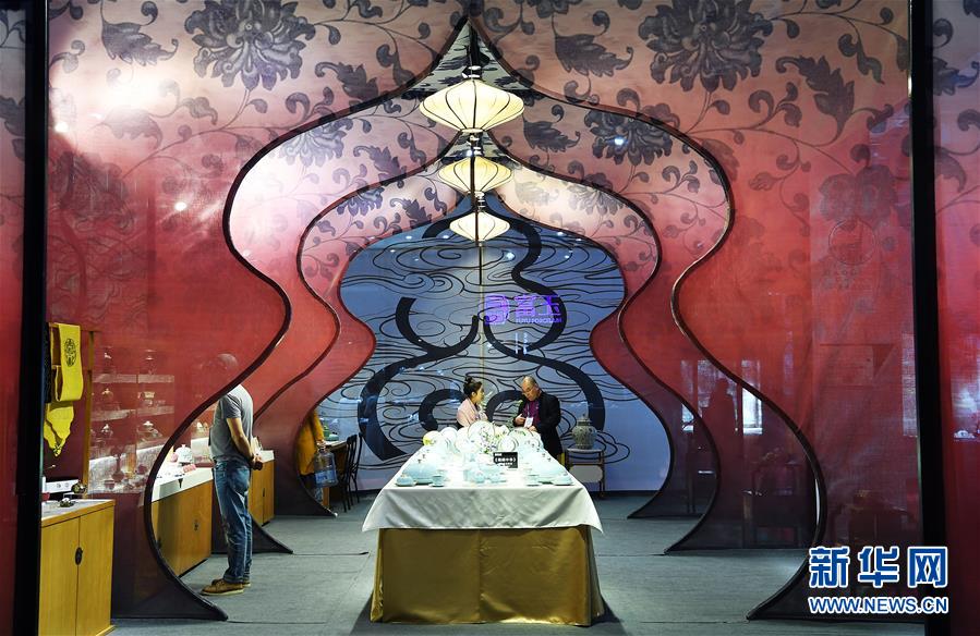 參觀者在參觀中國景德鎮(zhèn)國際陶瓷博覽會(huì)的展臺(tái)(2018年10月18日攝)。新華社記者 萬象 攝