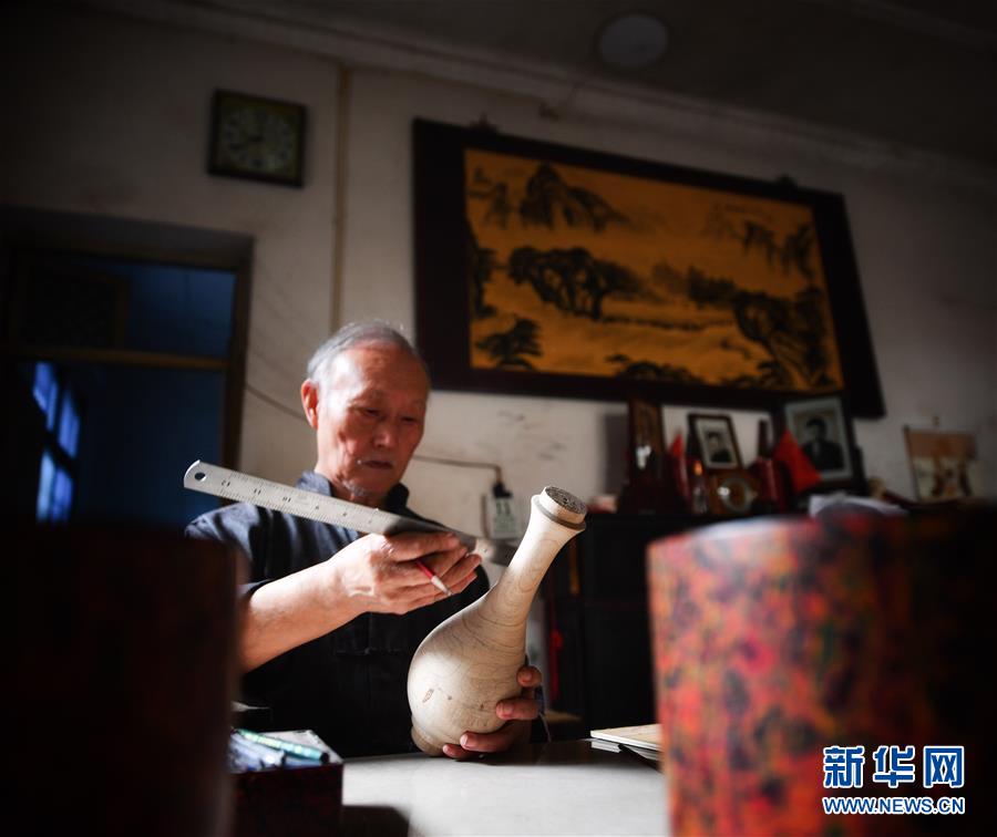 10月12日,丁國(guó)坤在家中設(shè)計(jì)一件脫胎漆器的模型。新華社記者胡晨歡攝