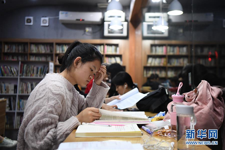 10月12日,一位讀者在湖南圖書館6點(diǎn)至24點(diǎn)開(kāi)放的自助圖書館內(nèi)看書學(xué)習(xí)。新華社記者薛宇舸攝