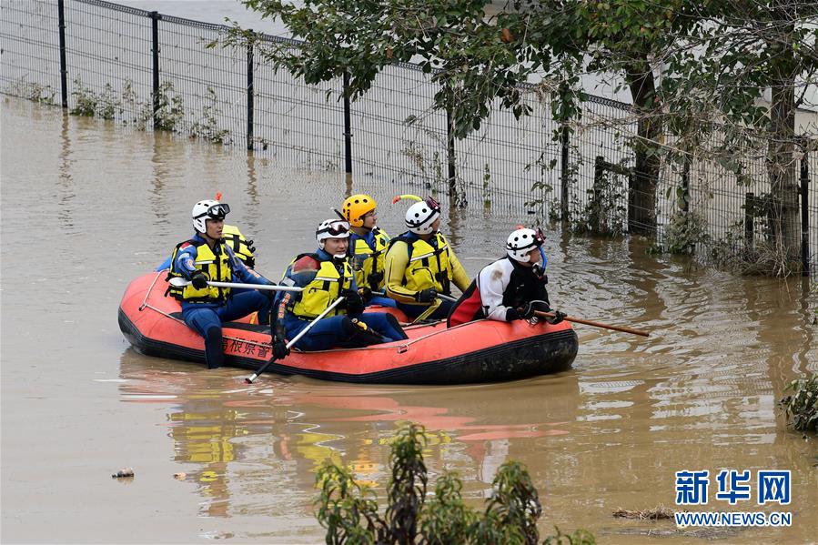 10月14日,在日本長(zhǎng)野市,當(dāng)?shù)鼐仍藛T展開搜救工作。受縱貫東日本強(qiáng)臺(tái)風(fēng)“海貝思”帶來(lái)的強(qiáng)降雨影響,日本多地暴發(fā)洪災(zāi),已造成33人死亡、19人失蹤。據(jù)日本共同社13日統(tǒng)計(jì),“海貝思”過(guò)境導(dǎo)致日本多處河流泛濫,目前有21條河流決堤24處。其中,流經(jīng)長(zhǎng)野縣的千曲川決堤,造成長(zhǎng)野市和千曲市大范圍被淹,大片住宅區(qū)被洪水包圍,有的房屋甚至被淹至2層。新華社記者華義攝