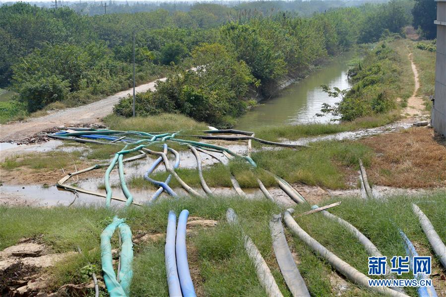在江西省南昌市南昌縣蔣巷鎮(zhèn),工作人員通過(guò)水泵從贛江中抽水保障當(dāng)?shù)剞r(nóng)業(yè)用水。這是鋪設(shè)的水管(10月10日攝)。 7月下旬至10月初,江西省平均降雨量為96毫米,比多年均值偏少約七成,排歷史同期倒數(shù)第一位,持續(xù)的少雨天氣導(dǎo)致江西省主要江河水位持續(xù)走低,多地出現(xiàn)不同程度的旱情。 針對(duì)當(dāng)前旱情,江西各地紛紛采取措施,積極組織群眾開(kāi)展抗旱自救,力爭(zhēng)將旱情帶來(lái)的損失降到最低。 新華社記者 彭昭之 攝