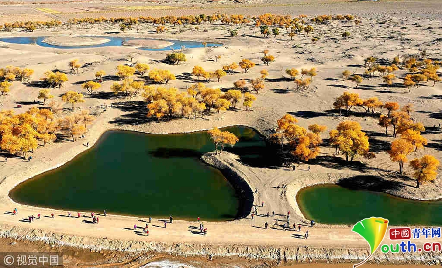 中國青年網(wǎng)北京10月9日電2018年10月7日至8日,內(nèi)蒙古自治區(qū)阿拉善盟額濟納旗,地處巴丹吉林沙漠。額濟納河兩岸壯觀的胡楊林堪稱大漠的一顆綠色明珠,每年深秋時節(jié)的第一場秋霜過后,大片的胡楊樹葉由綠變黃,一眼望去,陽光下金色的樹葉襯著湛藍的天空于風(fēng)中婆娑起舞,鮮明的影調(diào),亮麗的色彩,令人流連忘返。