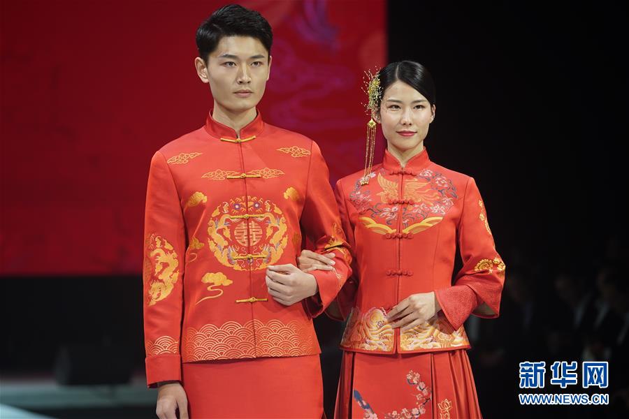 10月16日,模特在展示婚慶禮服。 當日,“愿·緣·圓”上久楷婚慶主題秀在江蘇省蘇州市吳江區(qū)盛澤鎮(zhèn)舉行。 新華社記者 季春鵬 攝