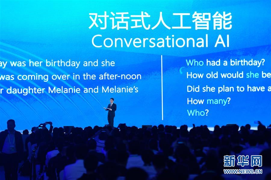 10月20日,微軟公司代表在介紹“統(tǒng)一自然語言預訓練模型與機器閱讀理解”。新華社記者 黃宗治 攝