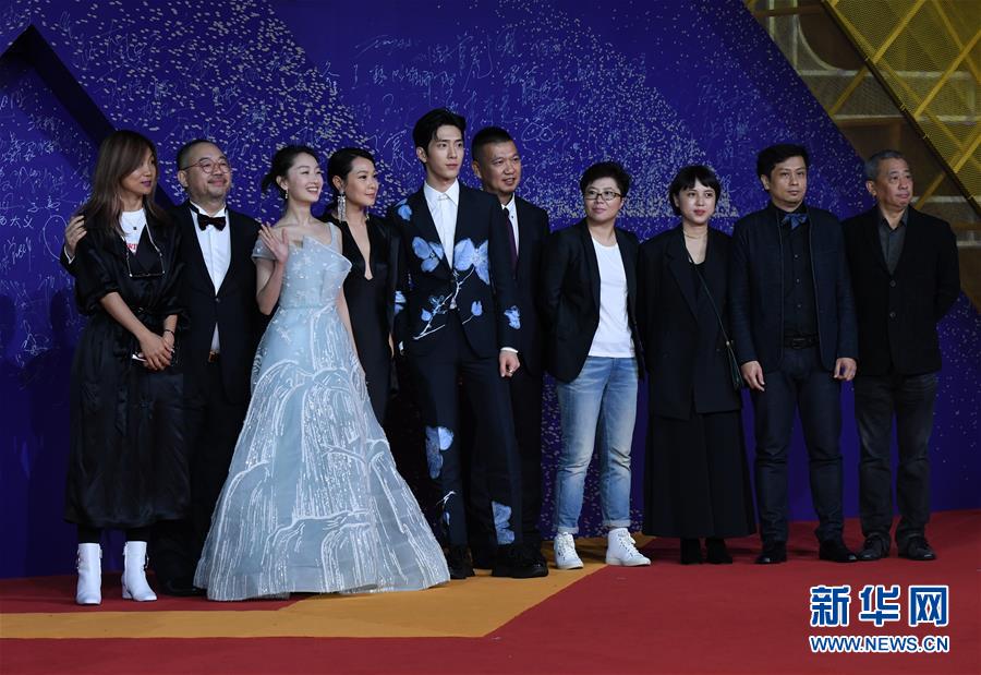 11月23日,電影《后來的我們》主創(chuàng)人員在紅毯儀式上。當(dāng)日,第28屆中國金雞百花電影節(jié)紅毯儀式在福建廈門舉行。新華社記者張國俊攝