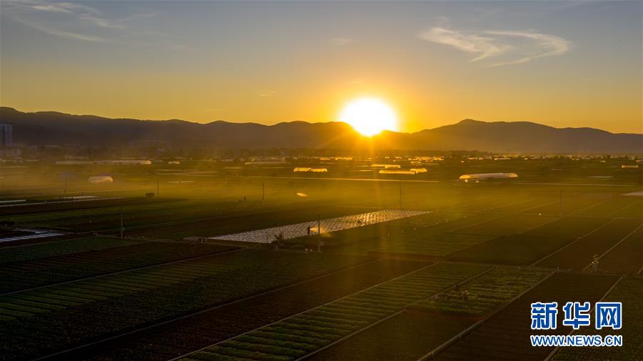 這是云南省玉溪市通??h的田園風(fēng)光(11月23日無人機(jī)拍攝)。初冬時節(jié),云南省玉溪市通??h風(fēng)景秀麗,山巒、湖水與農(nóng)田組成了一幅美麗的田園詩畫卷。新華社記者胡超攝