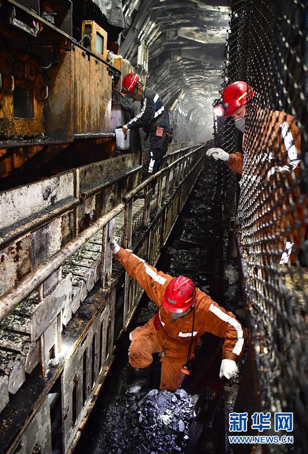 11月26日,在上灣煤礦12402綜采面內(nèi),工作人員對采煤機進行檢修。 新華社記者 邵瑞 攝