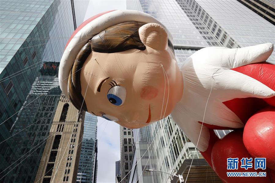11月28日,在美國紐約舉行的感恩節(jié)大游行上,卡通氣球行進在曼哈頓街頭。 新華社記者 李木子 攝