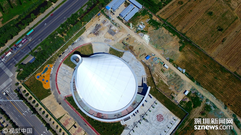 據(jù)了解,該建筑為該縣體育館的一部分,從規(guī)劃圖上得知,共有三座巨型的建筑組成,這個(gè)“磨盤”是其中的一個(gè)建筑,旁邊還有同樣的一個(gè)“磨盤”建筑在建。