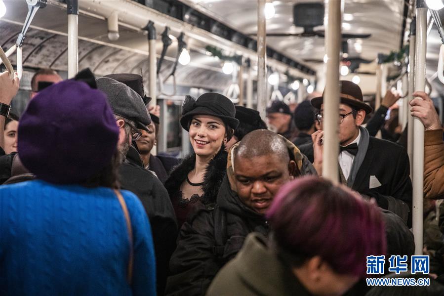 12月8日,在美國紐約,人們搭乘“懷舊專列”。每年感恩節(jié)到新年之間的星期日,紐約地鐵都會(huì)用1932年至1977年間使用的老式列車在運(yùn)營的線路上開行特別的“懷舊專列”,人們穿戴舊時(shí)服飾專程前來搭乘,體驗(yàn)時(shí)光回溯的奇妙旅程。新華社記者王迎攝
