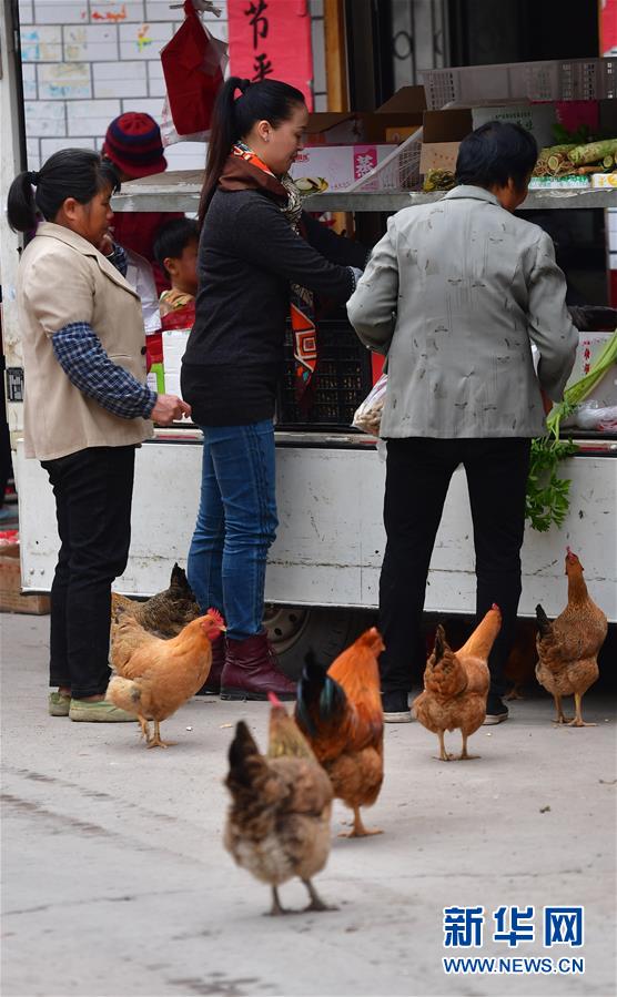 在鹿寨縣拉溝鄉(xiāng)木龍村,李柳萍(右二)在采購鄉(xiāng)村土特產(12月14日攝)。新華社記者黃孝邦攝