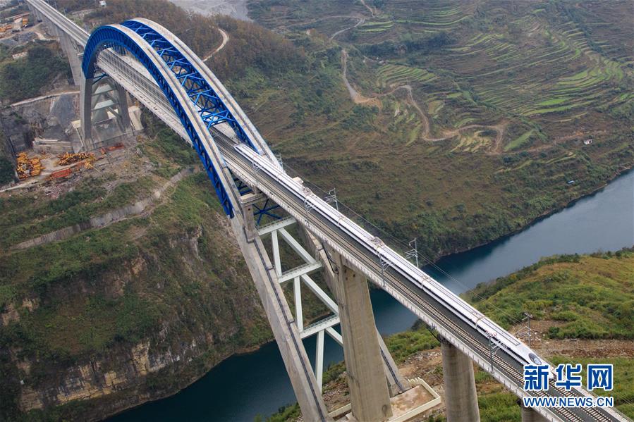 12月2日,一輛試驗(yàn)列車駛過成貴高鐵鴨池河特大橋。當(dāng)日,正在進(jìn)行聯(lián)調(diào)聯(lián)試的成貴高鐵進(jìn)入全線拉通空載模擬運(yùn)行階段,試驗(yàn)列車將在成都到貴陽區(qū)間內(nèi)全線路運(yùn)行。線路全長650公里的成貴高鐵是我國“八縱八橫”高速鐵路網(wǎng)的重要組成部分,設(shè)計(jì)時(shí)速為250公里。新華社記者劉續(xù)攝