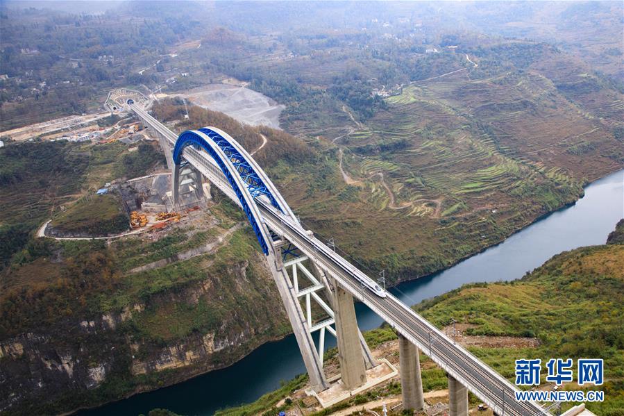 12月16日,一列動(dòng)車組列車從成貴高鐵西溪河大橋上駛過。新華社記者楊文斌攝