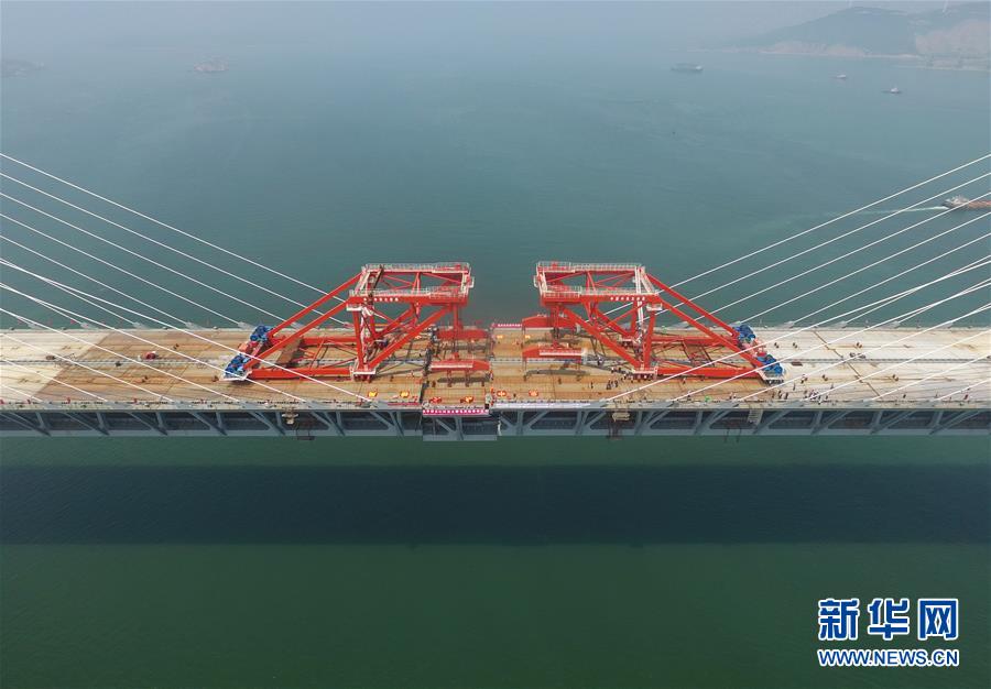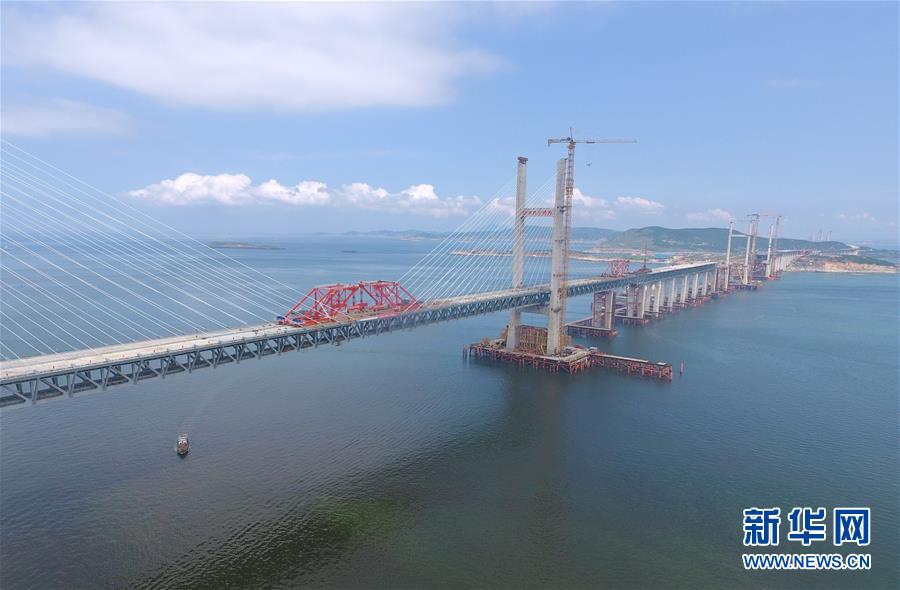 9月21日,平潭海峽公鐵大橋鼓嶼門(mén)航道橋的鋼桁梁在吊裝中(無(wú)人機(jī)拍攝)。9月25日上午,隨著一段長(zhǎng)17米、重473噸的鋼桁梁被精確固定到位,總長(zhǎng)16.34公里的平潭海峽公鐵大橋合龍貫通。平潭海峽公鐵大橋是福州至平潭鐵路控制性工程,也是“十三五”規(guī)劃中北京至臺(tái)灣高鐵的先期工程。大橋起于福州市長(zhǎng)樂(lè)區(qū),“踏”過(guò)四座小島后抵達(dá)中國(guó)第五大島平潭,上層設(shè)計(jì)為時(shí)速100公里的六車道高速公路,下層為設(shè)計(jì)時(shí)速200公里的高鐵。據(jù)福建福平鐵路公司介紹,大橋計(jì)劃2020年正式通車。在六年建設(shè)過(guò)程中,平潭海峽公鐵大橋所應(yīng)用研發(fā)的多項(xiàng)技術(shù)、裝備創(chuàng)下國(guó)內(nèi)外紀(jì)錄。新華社記者林善傳攝
