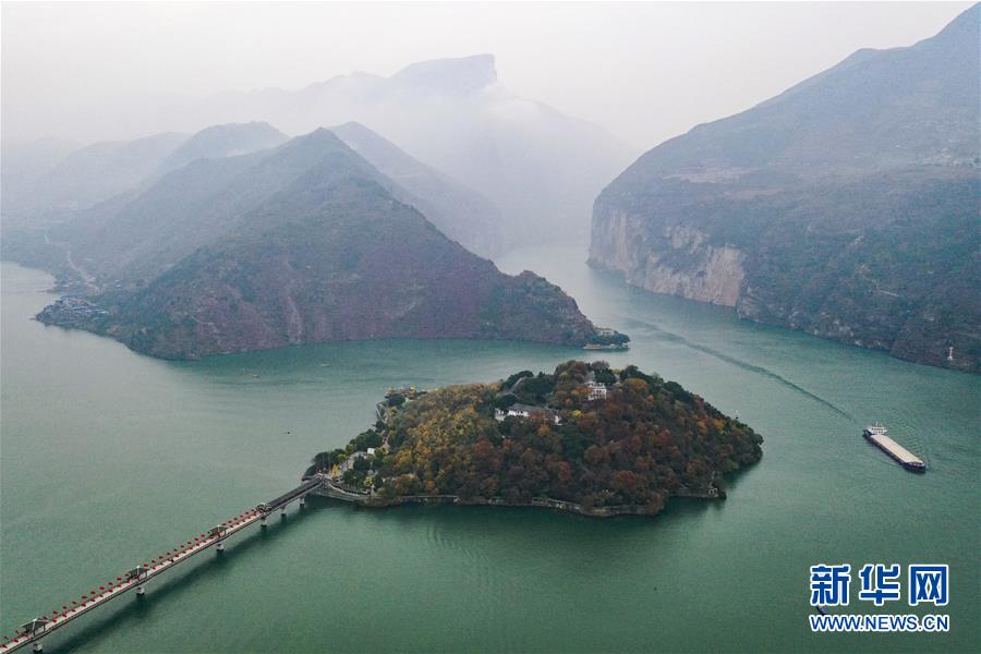 2019年11月2日,重慶,俯瞰三峽蓄水之后的“白帝城孤島”全貌。