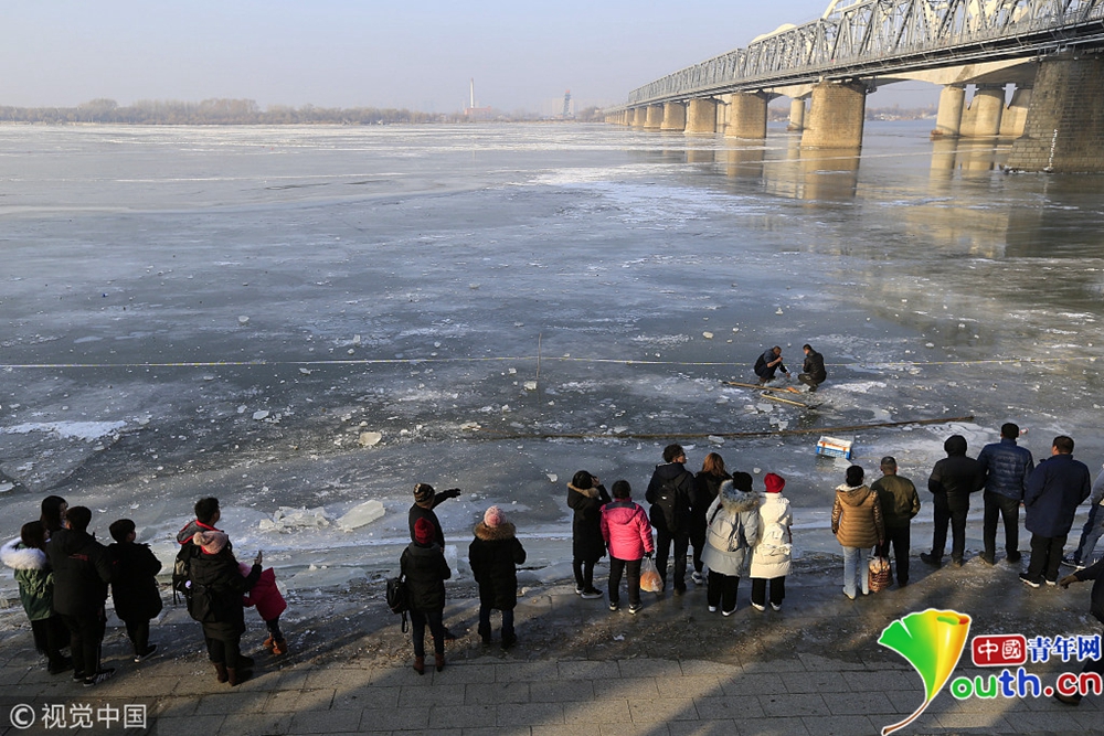 岸邊,不少游客圍觀。圖片來源:視覺中國(guó)