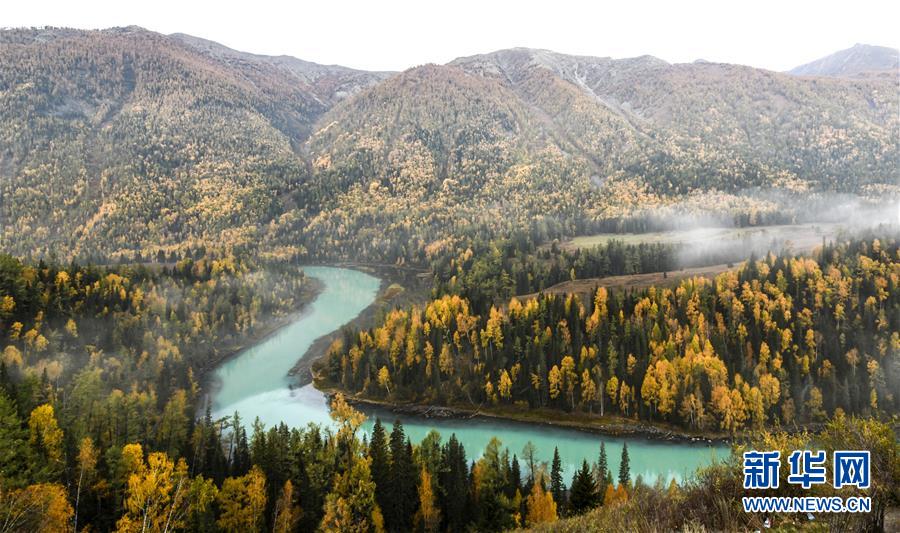 9月24日拍攝的喀納斯景區(qū)風光。新華社記者王菲攝