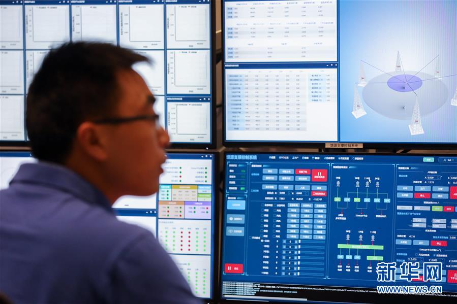 8月30日凌晨,工作人員在“中國(guó)天眼”總控室內(nèi)工作。新華社記者歐東衢攝