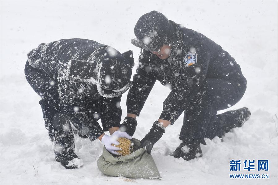 為保障候鳥在敬信濕地逗留期間的安全,琿春森林公安局基層民警奮戰(zhàn)在護鳥一線,積極加大巡護力度,在風(fēng)雪天氣為候鳥投放糧食,嚴打獵捕候鳥違法犯罪,確保候鳥遷徙通道安全。新華社記者 許暢 攝