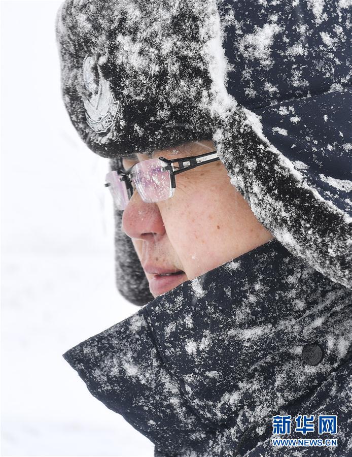 吉林省琿春森林公安局敬信派出所所長高巍在巡護途中(3月4日攝)。新華社記者 許暢 攝