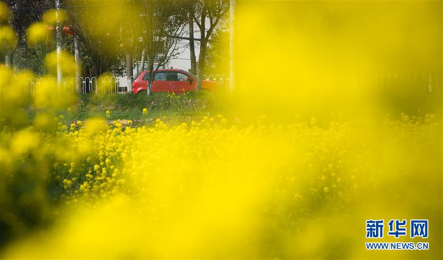 3月14日,在武漢市西北部市郊,一輛汽車從油菜花田前駛過(guò)。隨著氣溫升高,春意在武漢的枝頭上萌動(dòng),花朵漸次開(kāi)放。新華社記者肖藝九攝