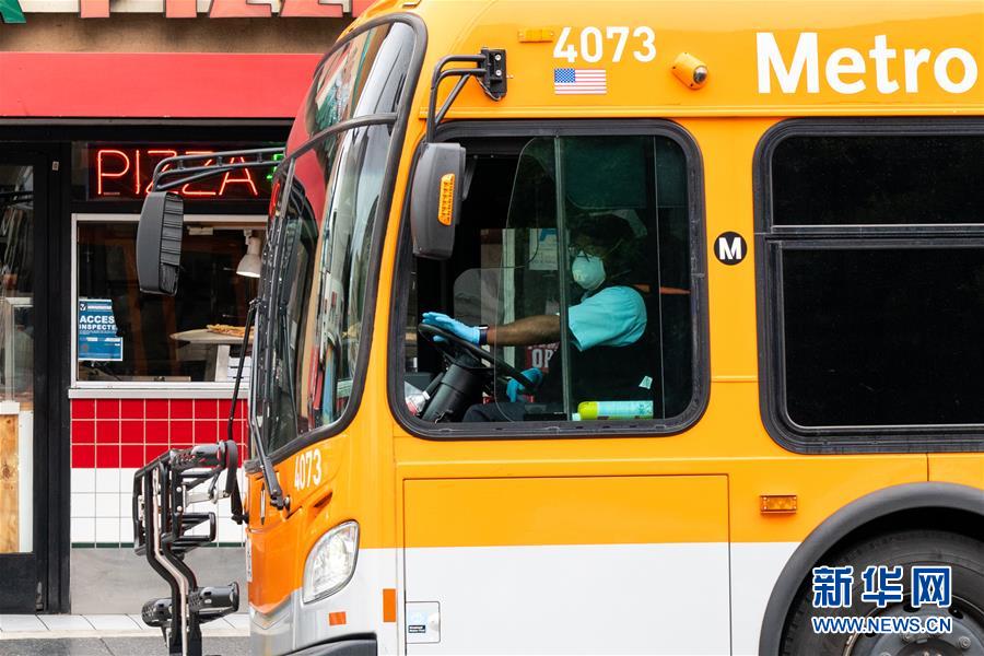3月20日,在美國加利福尼亞州洛杉磯,公交車駕駛員戴著口罩。 新華社發(fā)(錢衛(wèi)忠攝)