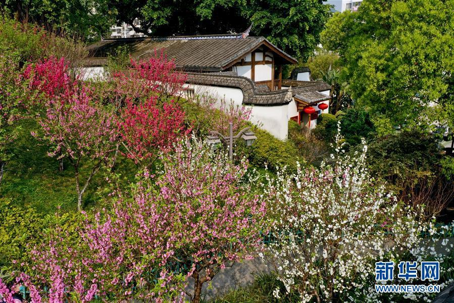3月22日,在福州烏山歷史風(fēng)貌區(qū),繁花綠樹掩映著一處傳統(tǒng)古厝(無(wú)人機(jī)照片)。近日,福建省福州市烏山、三坊七巷等歷史文化街區(qū)內(nèi)草木吐綠,鮮花盛開,掩映著一座座傳統(tǒng)古厝,更顯濃濃春意。新華社記者姜克紅攝