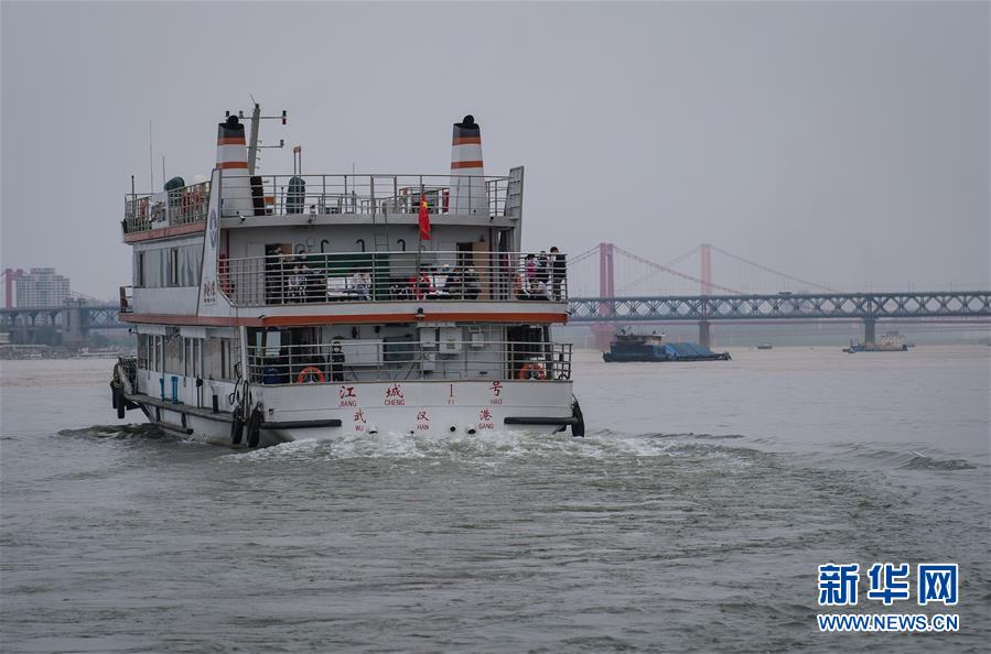 4月8日,乘客在武漢乘坐輪渡出行。新華社記者肖藝九攝