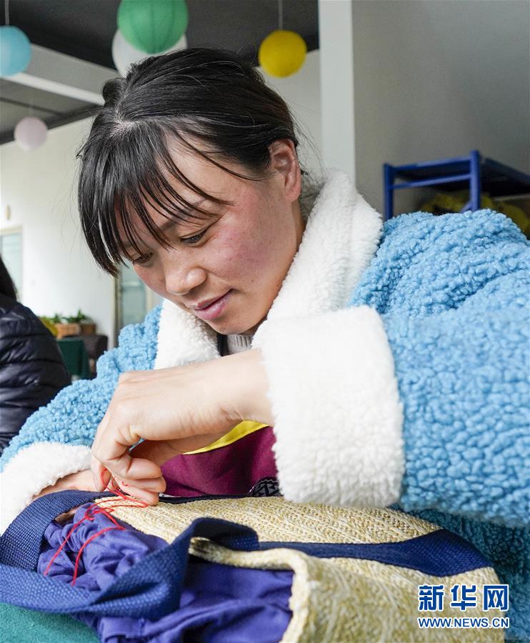4月8日,在重慶石柱中益鄉(xiāng)巾幗扶貧工坊,當(dāng)?shù)貗D女在縫制土家族風(fēng)情手提袋。近年來(lái),重慶市石柱土家族自治縣中益鄉(xiāng)在重慶市婦聯(lián)的幫助下,以當(dāng)?shù)胤沁z傳統(tǒng)技藝作為結(jié)合點(diǎn),把扶貧與扶志、扶智相結(jié)合,通過(guò)引進(jìn)外來(lái)文創(chuàng)企業(yè)對(duì)留守婦女、貧困及殘疾人群進(jìn)行刺繡培訓(xùn),設(shè)立巾幗扶貧工坊等多種形式,幫助當(dāng)?shù)卮迕駥?shí)現(xiàn)就業(yè)增收。據(jù)介紹,巾幗扶貧工坊運(yùn)行以來(lái),為當(dāng)?shù)仃懤m(xù)開(kāi)發(fā)出土家族布老虎、手提袋、餐墊繡邊、創(chuàng)意相框等一系列文創(chuàng)產(chǎn)品,幫助參加巾幗扶貧工坊的留守婦女和貧困村民實(shí)現(xiàn)月均增收近千元。新華社記者劉潺攝