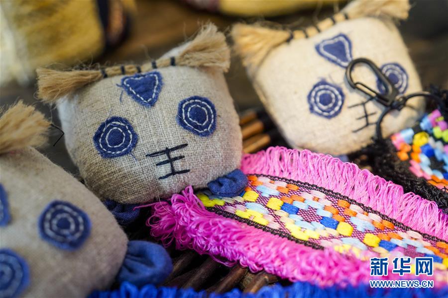 這是重慶石柱中益鄉(xiāng)巾幗扶貧工坊內(nèi)展示的當(dāng)?shù)貗D女制作的土家族風(fēng)情布老虎(4月8日攝)。近年來(lái),重慶市石柱土家族自治縣中益鄉(xiāng)在重慶市婦聯(lián)的幫助下,以當(dāng)?shù)胤沁z傳統(tǒng)技藝作為結(jié)合點(diǎn),把扶貧與扶志、扶智相結(jié)合,通過(guò)引進(jìn)外來(lái)文創(chuàng)企業(yè)對(duì)留守婦女、貧困及殘疾人群進(jìn)行刺繡培訓(xùn),設(shè)立巾幗扶貧工坊等多種形式,幫助當(dāng)?shù)卮迕駥?shí)現(xiàn)就業(yè)增收。據(jù)介紹,巾幗扶貧工坊運(yùn)行以來(lái),為當(dāng)?shù)仃懤m(xù)開(kāi)發(fā)出土家族布老虎、手提袋、餐墊繡邊、創(chuàng)意相框等一系列文創(chuàng)產(chǎn)品,幫助參加巾幗扶貧工坊的留守婦女和貧困村民實(shí)現(xiàn)月均增收近千元。新華社記者劉潺攝