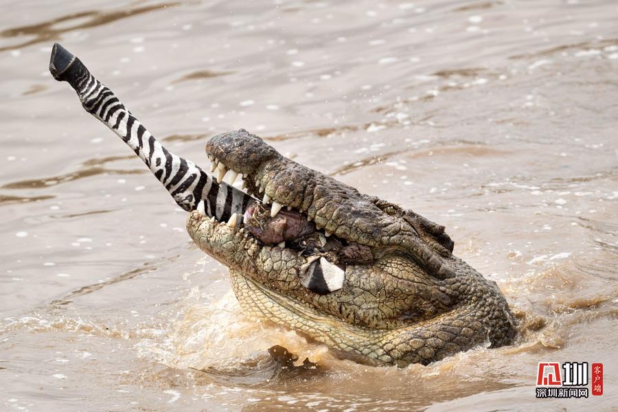 2020年5月20日?qǐng)?bào)道(具體拍攝時(shí)間不詳),印度攝影師Nimit Virdi在肯尼亞賽馬拉國(guó)家保護(hù)區(qū)中親眼目睹到鱷魚(yú)獵食的震撼畫(huà)面。