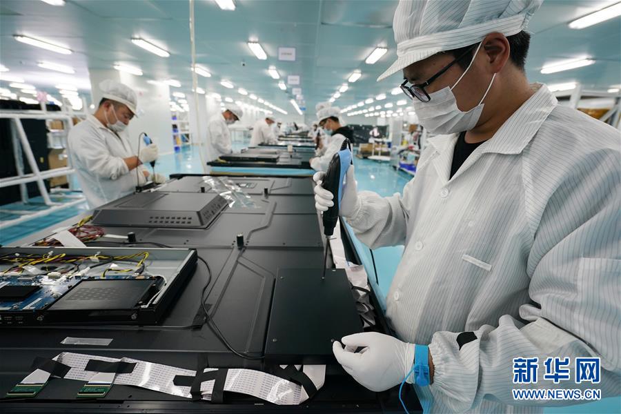 在位于宿遷激光產(chǎn)業(yè)園的江蘇華科創(chuàng)智技術(shù)有限公司,工人在觸摸屏生產(chǎn)車間作業(yè)(5月13日攝)。江蘇省宿遷市2016年初啟動建設(shè)宿遷激光產(chǎn)業(yè)園,目前,園區(qū)共有激光及相關(guān)配套企業(yè)50余家,涉及激光切割、激光打標(biāo)、激光醫(yī)療等。當(dāng)?shù)夭粩嗤晟茍@區(qū)配套設(shè)施,推動激光產(chǎn)業(yè)集聚,打造激光研發(fā)、裝備制造和加工應(yīng)用的完整產(chǎn)業(yè)鏈。新華社記者李博攝
