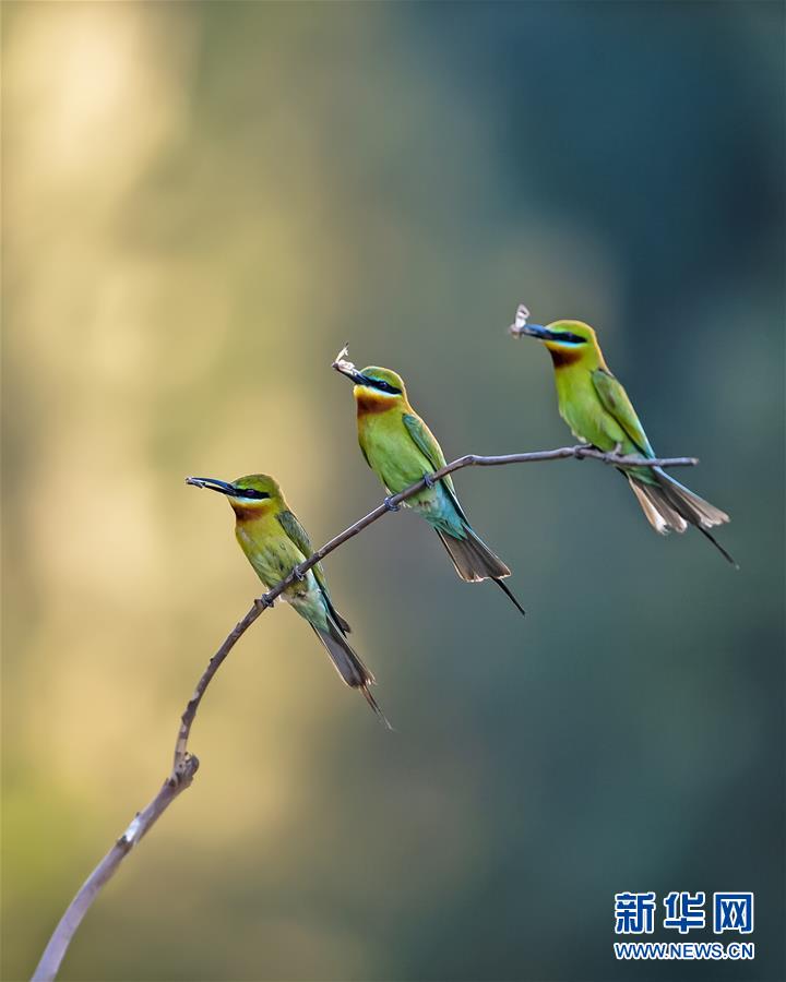 栗喉蜂虎在福建省晉江市深滬鎮(zhèn)科任村一山坡上覓食嬉戲(6月12日攝)。入夏以來,逾百只栗喉蜂虎飛臨閩南晉江市深滬鎮(zhèn)科任村筑巢棲息。新華社記者記者梅永存攝。