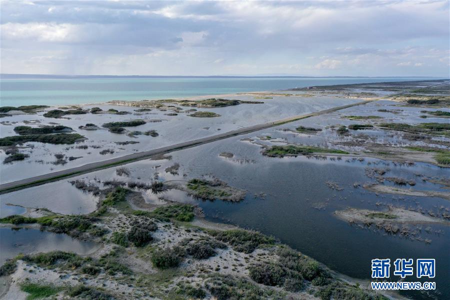 6月18日拍攝的新疆烏倫古湖國家濕地公園(無人機(jī)照片)。烏倫古湖國家濕地公園位于新疆阿勒泰地區(qū)福??h城以西,由烏倫古湖和吉力湖兩部分組成。烏倫古湖濕地公園是遷徙候鳥飛越天山和阿爾泰山的“能量補(bǔ)充站”,良好的濕地生態(tài)吸引著大量遷徙鳥類在此集結(jié)成群,繁殖棲息,成為一道靚麗的風(fēng)景線。新華社記者 沙達(dá)提 攝