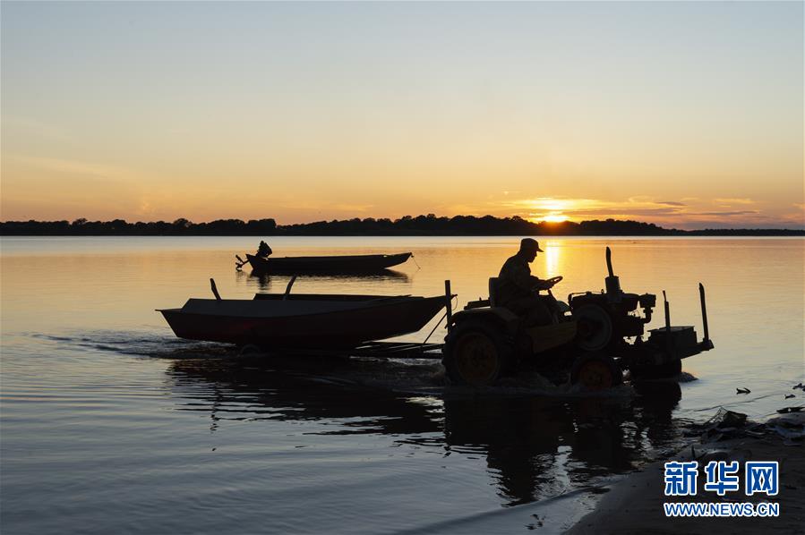 7月24日,漁民在大力加湖中捕魚歸來(lái)。大力加湖位于“中國(guó)東極”黑龍江省撫遠(yuǎn)市,面積28.5平方公里,兩岸地勢(shì)低平,多濕地、草原,湖內(nèi)水產(chǎn)豐富。夏日傍晚時(shí)分,漁民捕魚歸來(lái),美麗畫卷映入眼簾。新華社記者謝劍飛攝