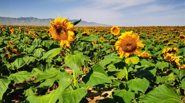初秋時(shí)節(jié),位于甘肅省白銀市景泰縣寺灘鄉(xiāng)的十萬畝向日葵競(jìng)相綻放,金黃的葵花張開“笑臉”,迎接豐收。 【詳細(xì)】