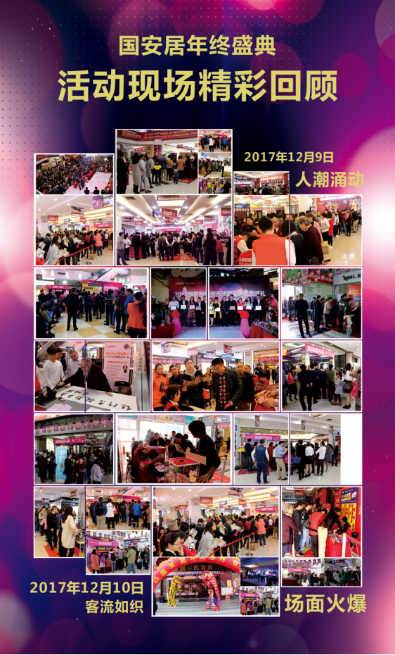 12月9、10日,全城矚目的“2017年國(guó)安居年終盛典收官之作暨俄羅斯美麗大使親善之旅”在國(guó)安居深惠六店隆重開(kāi)啟。當(dāng)天國(guó)安居800品牌開(kāi)倉(cāng)低價(jià)促銷沖量,各店客流如織,場(chǎng)面火爆,早晨八點(diǎn)半,當(dāng)天活動(dòng)還未開(kāi)始,為了能早點(diǎn)買單,搶到更多的禮包和獎(jiǎng)品,國(guó)安居各店門前早早就排起了長(zhǎng)隊(duì)。