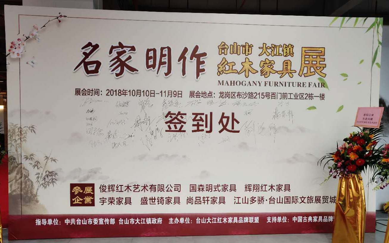 據(jù)了解,此次活動參展企業(yè)有:俊輝紅木藝術有限公司,國森明式家具,輝翔紅木家具,宇榮家具,盛世锜家具,尚品軒家具,江山多驕·臺山國際文旅展貿(mào)城,活動時間:2018年10月10日-11月09日。