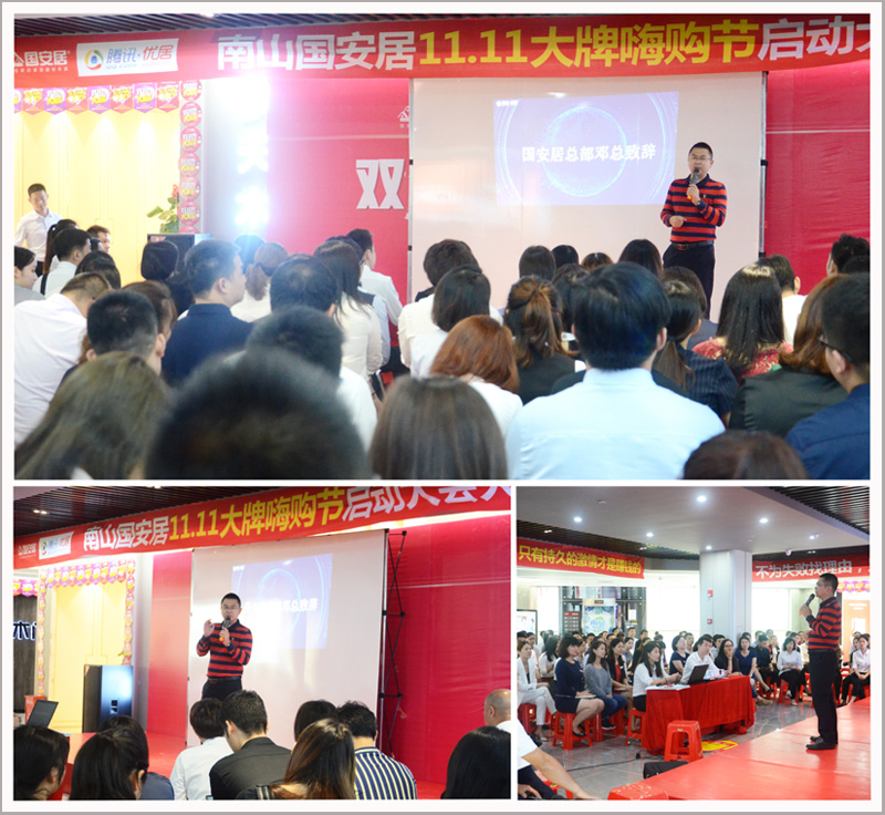 深圳新聞網訊 10月22日下午,“國安居南山店&騰訊優(yōu)居雙11大牌嗨購節(jié)”活動啟動大會在國安居南山店四樓隆重舉行。國安居南山店各品牌商家老板及銷售精英匯聚于此,正式擂響“雙11大促”的出征鼓!