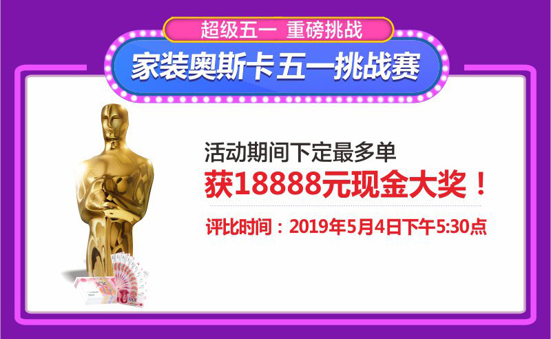6、家裝奧斯卡,五一挑戰(zhàn)賽:4月20日-5月4日活動期間,在店內(nèi)下定最多單數(shù)將獲得本次活動特設(shè)的18888元現(xiàn)金大獎,至少8個品牌,同一品牌算一單,每單須實付3000元以上。(需繳稅個人所得稅)